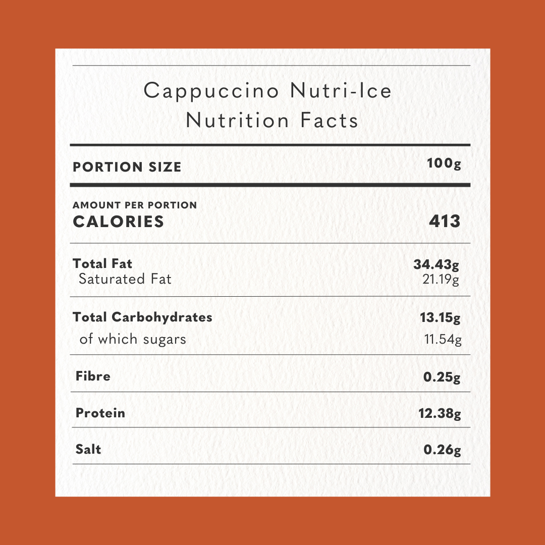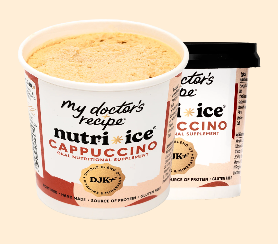 Our Cappuccino Nutri-Ice® is a smooth, rich frozen nutritional supplement that doubles as a nourishing cappuccino ice cream alternative, crafted for individuals suffering from malnutrition due to chronic diseases like cancer. Made with real coffee grinds and premium instant coffee, Cappuccino Nutri-Ice® delivers a bold and aromatic flavour that energises while nourishing the body.