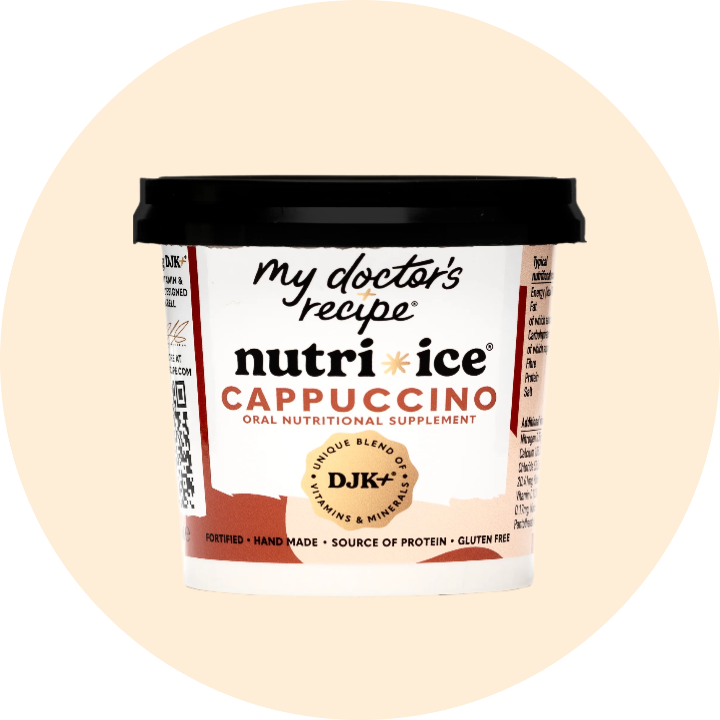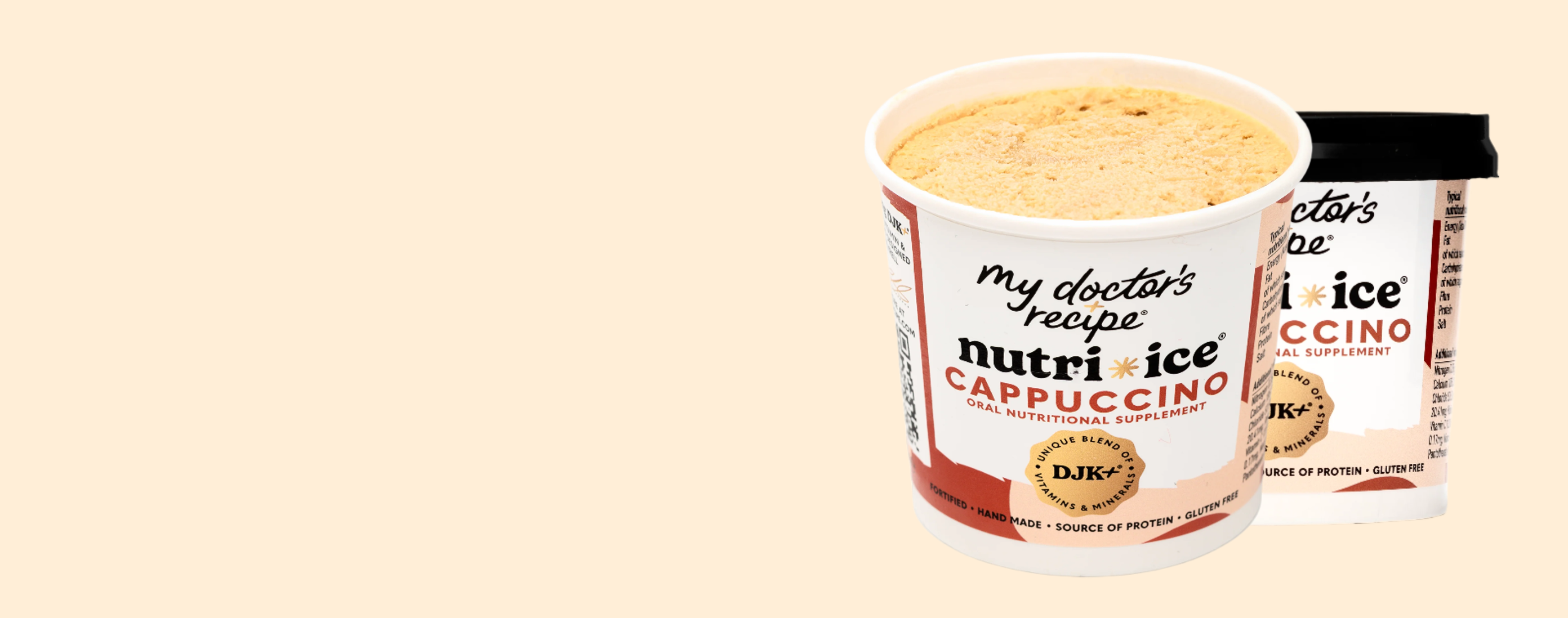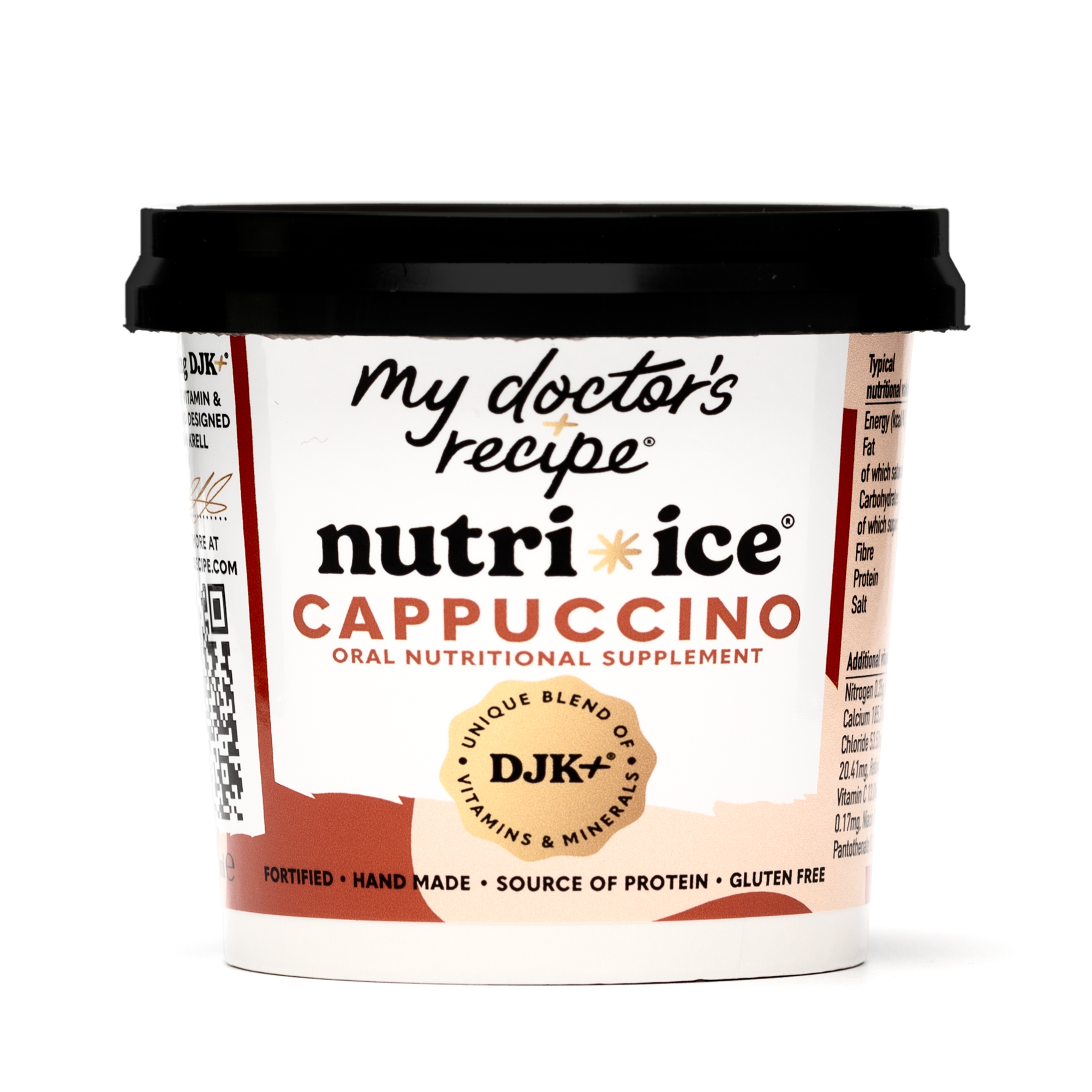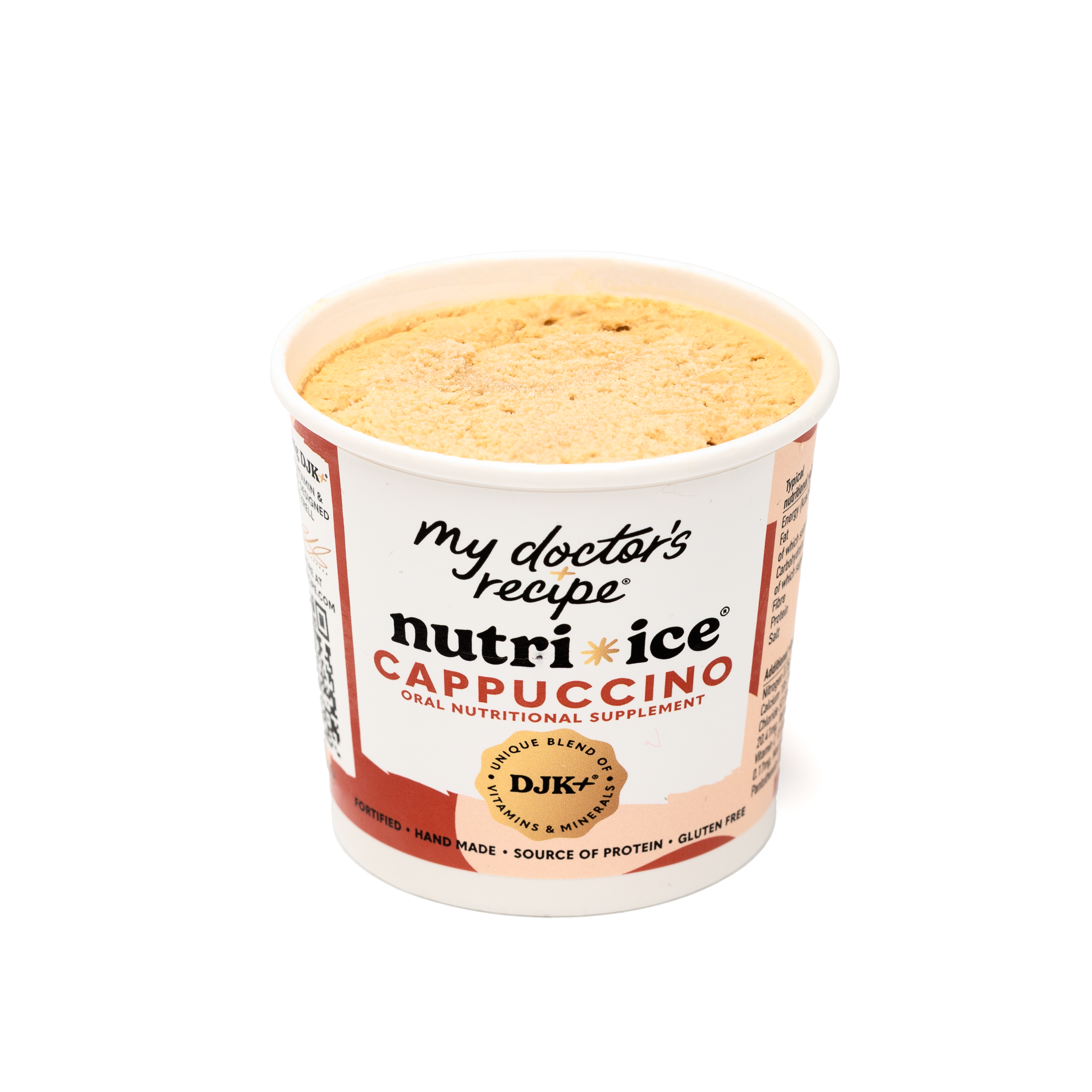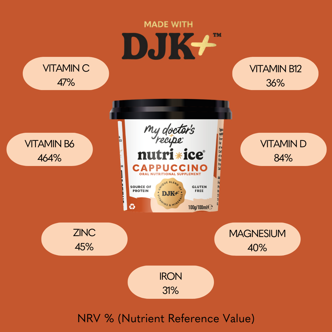 Infused with our exclusive DJK+® blend (patent pending) of essential vitamins and minerals and whey protein, each tub is designed to support recovery and well-being. Developed by a leading London oncologist and naturally sweetened with date syrup, this smooth cappuccino treat offers a delicious way to revitalize and strengthen.