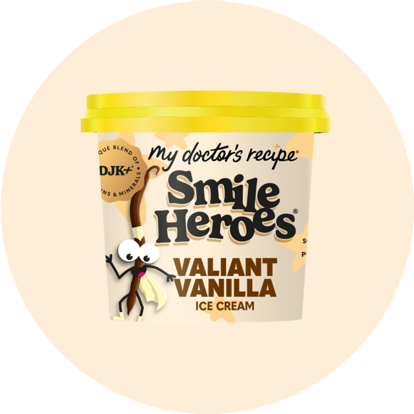 Our co-founder, Dr Jon Krell, developed a unique, game-changing formula known as DJK+® - an encapsulation of essential vitamins and minerals. Each tub of Nutri-Ice®, Nutri-Scoop® and Smile Heroes® is enriched with over 30% of the NRV (Nutrient Reference Value) for Vitamin D, Vitamin C, Vitamin B12, Vitamin B6, Magnesium, Iron & Zinc.